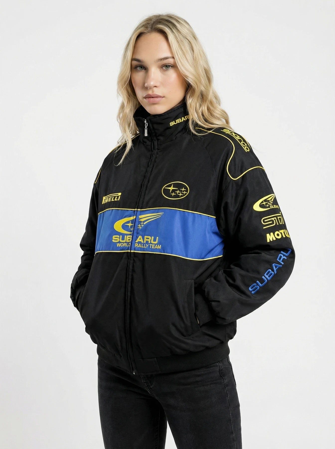 This Subaru racing jacket is a must-have for true car enthusiasts, inspired by Subaru’s dominance in rally racing and motorsport culture. It's a bold tribute to the golden era of WRC and the legacy of the boxer engine.